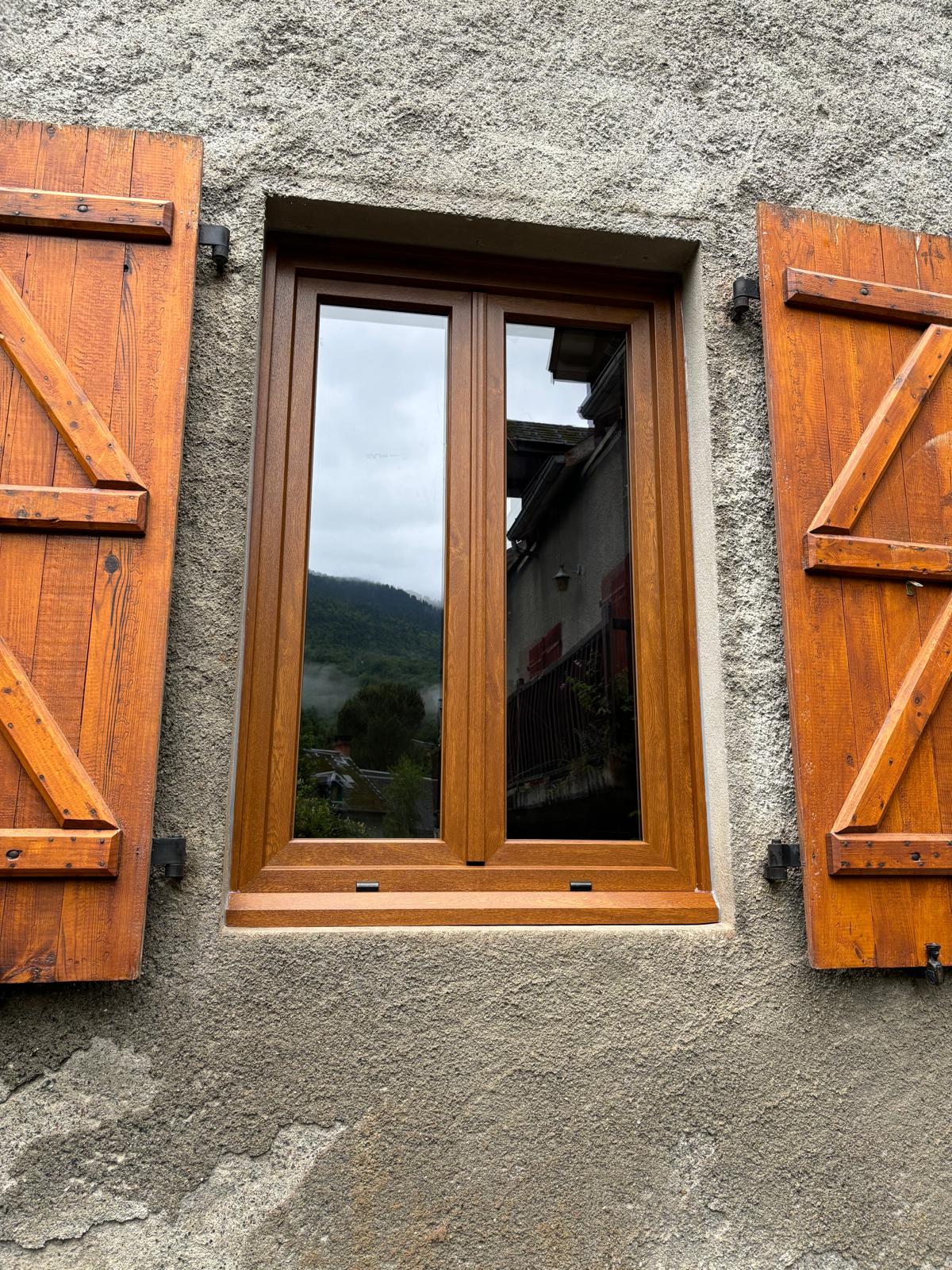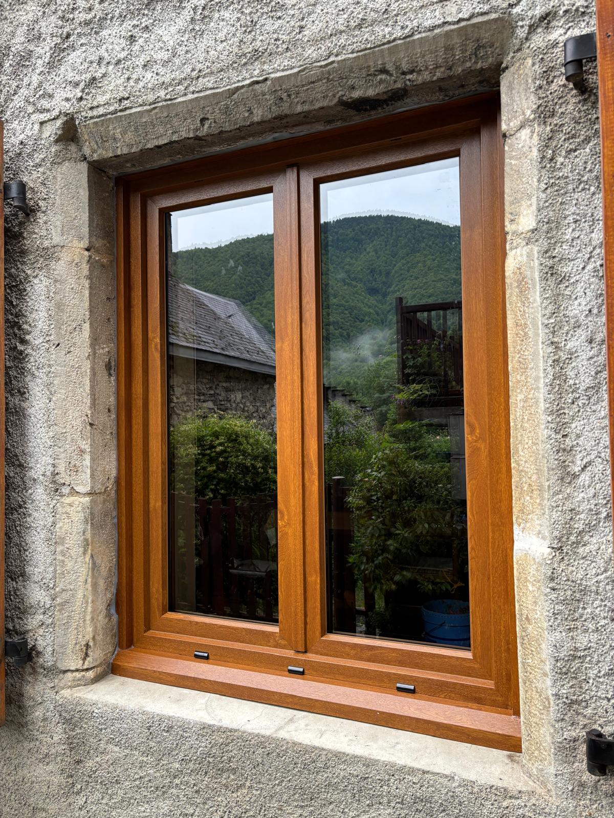 Pose de fenêtres et porte d'entrée en PVC imitation chêne