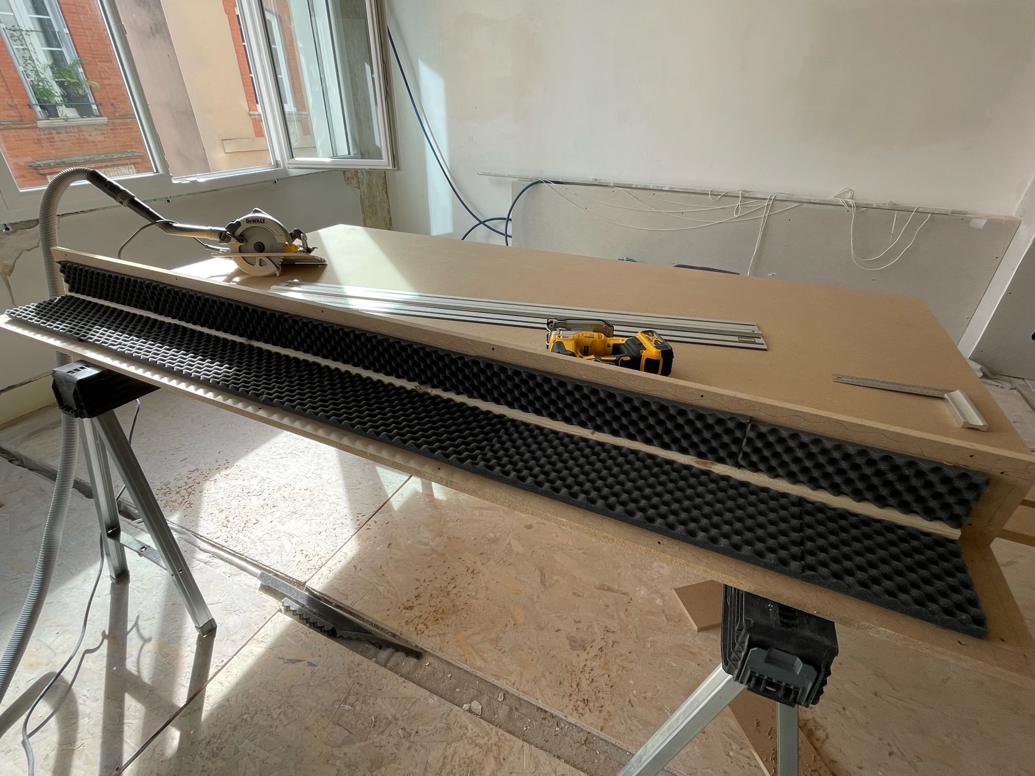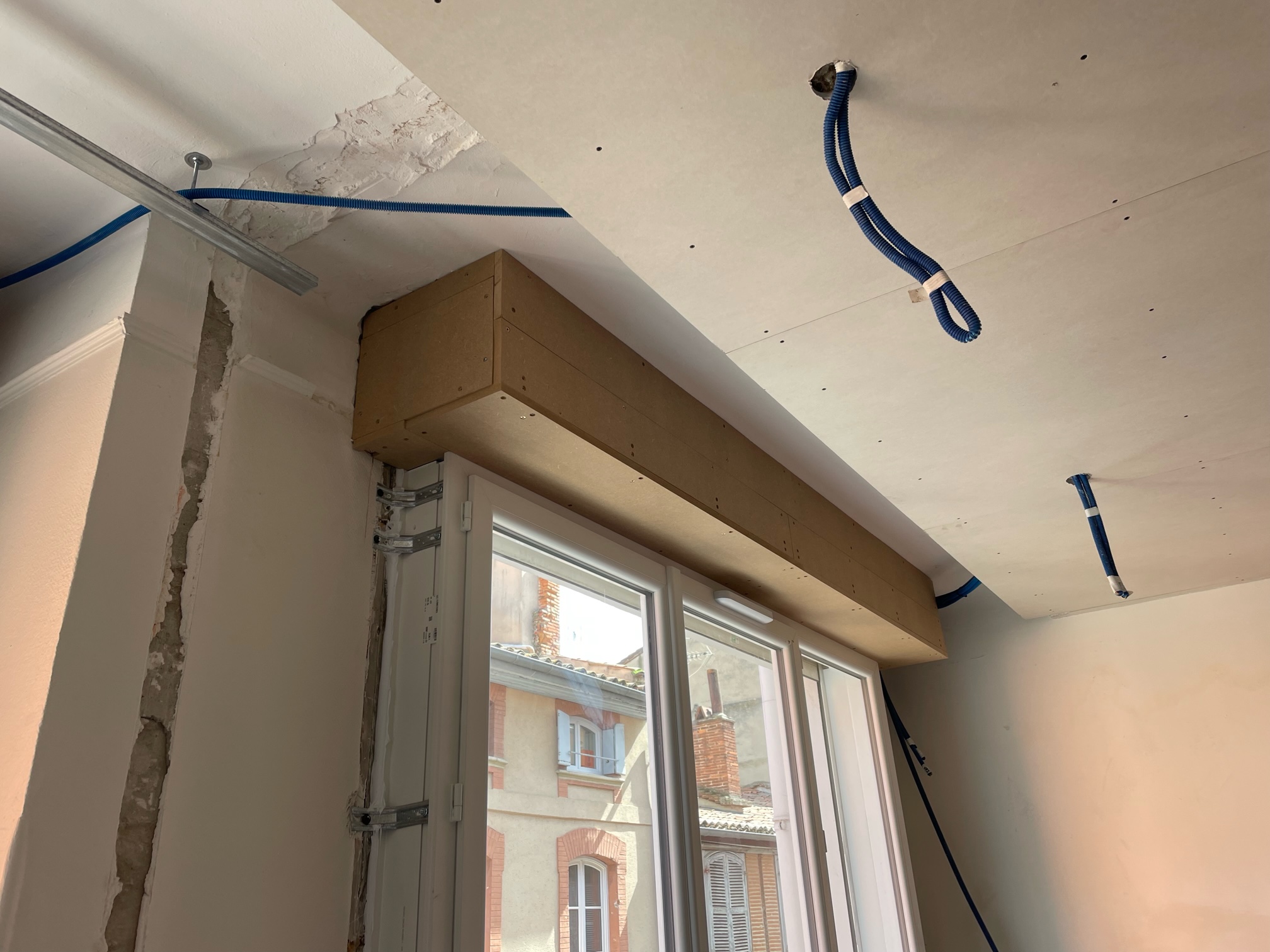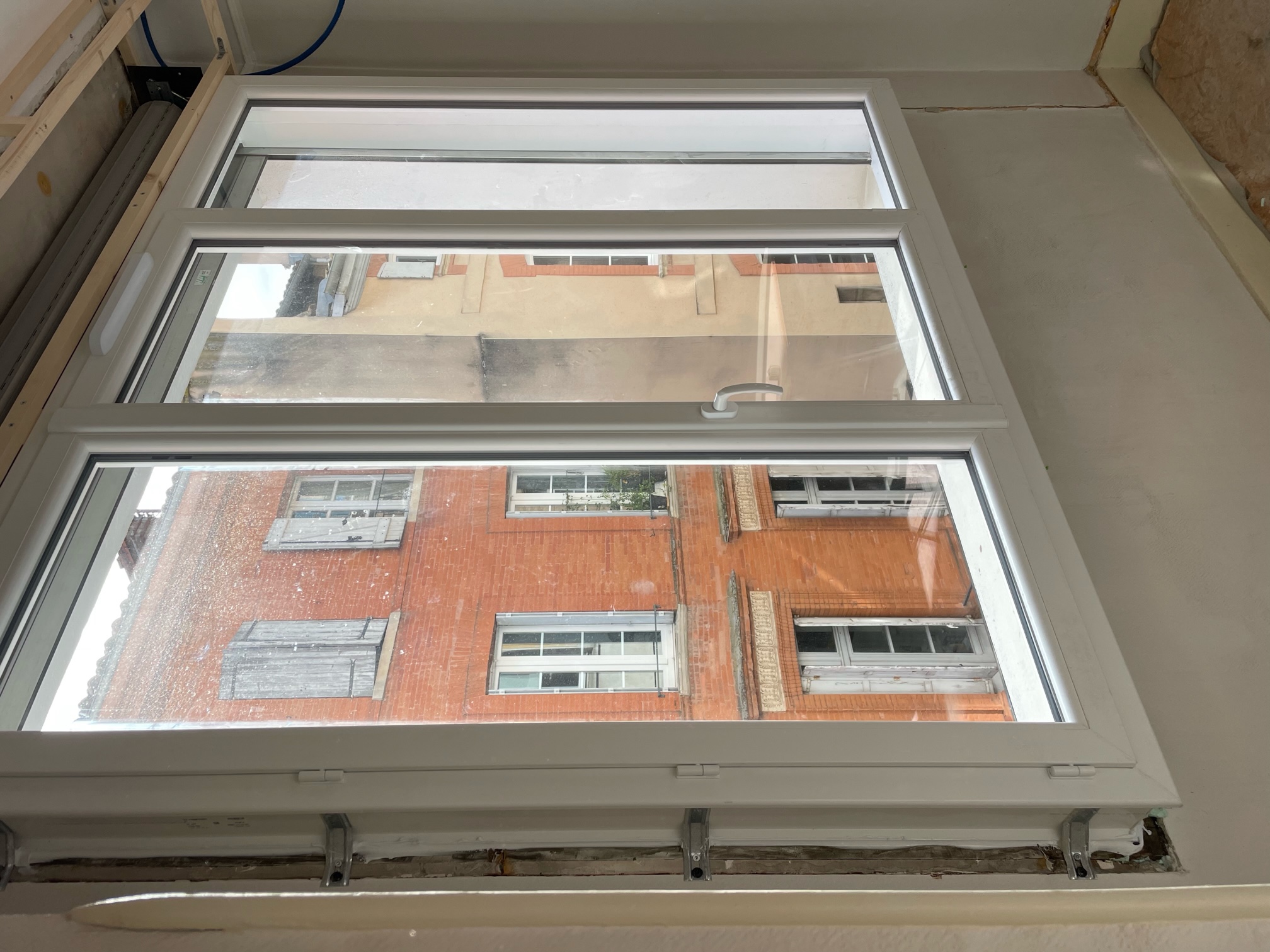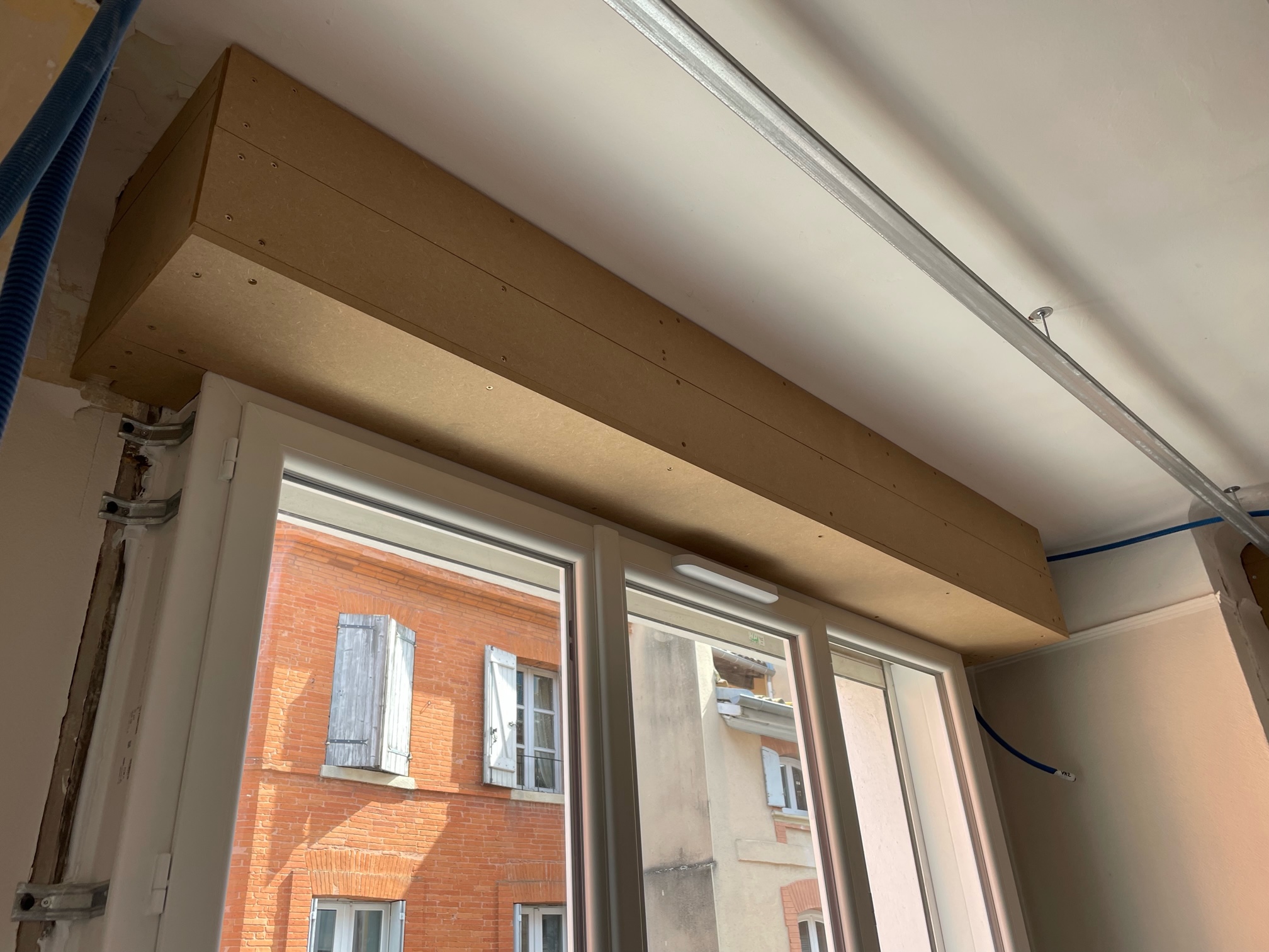 Remplacement des fenêtres d’un appartement en centre ville de Toulouse avec une pose en applique pour doublage et vitrage à isolation phonique et remplacement des coffres intérieurs de volets roulants par des caissons en médium avec isolant acoustique.