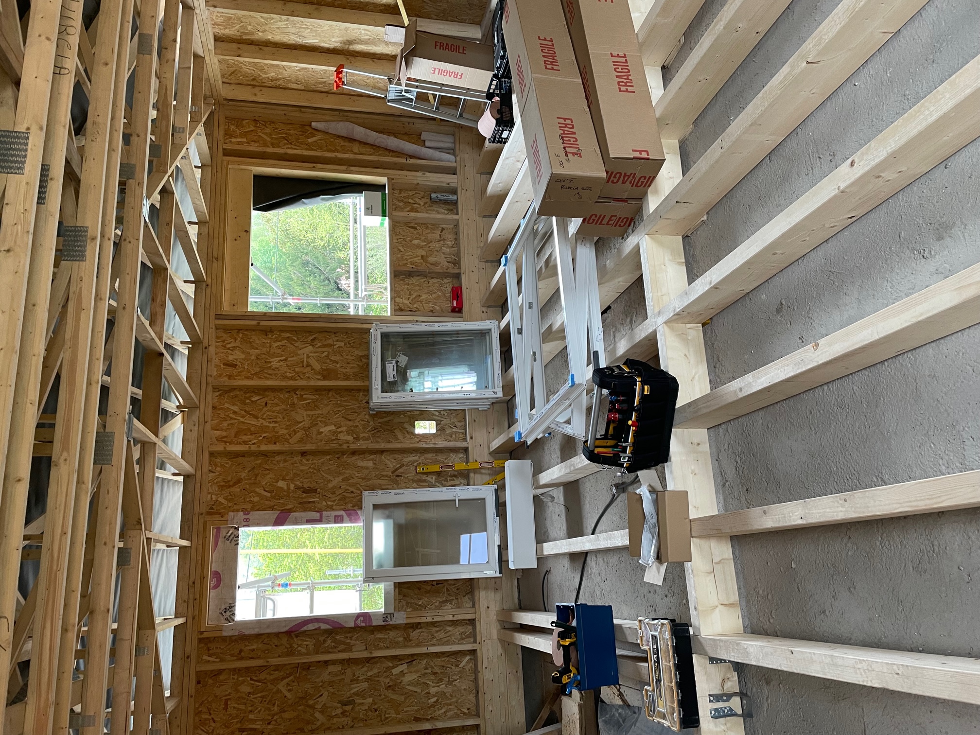 Fenêtres PVC avec volet roulant intégré pour une surélévation en ossature bois
