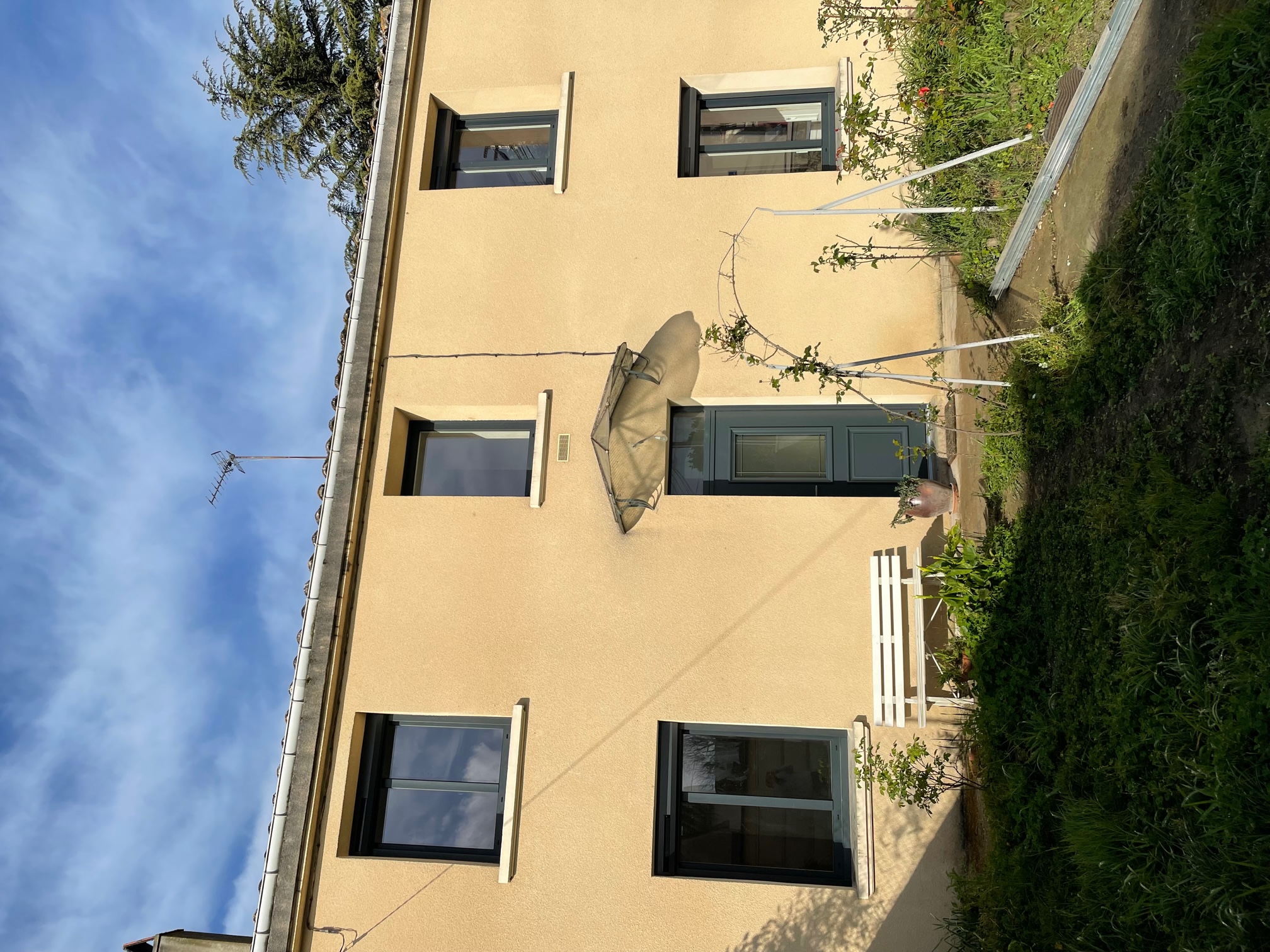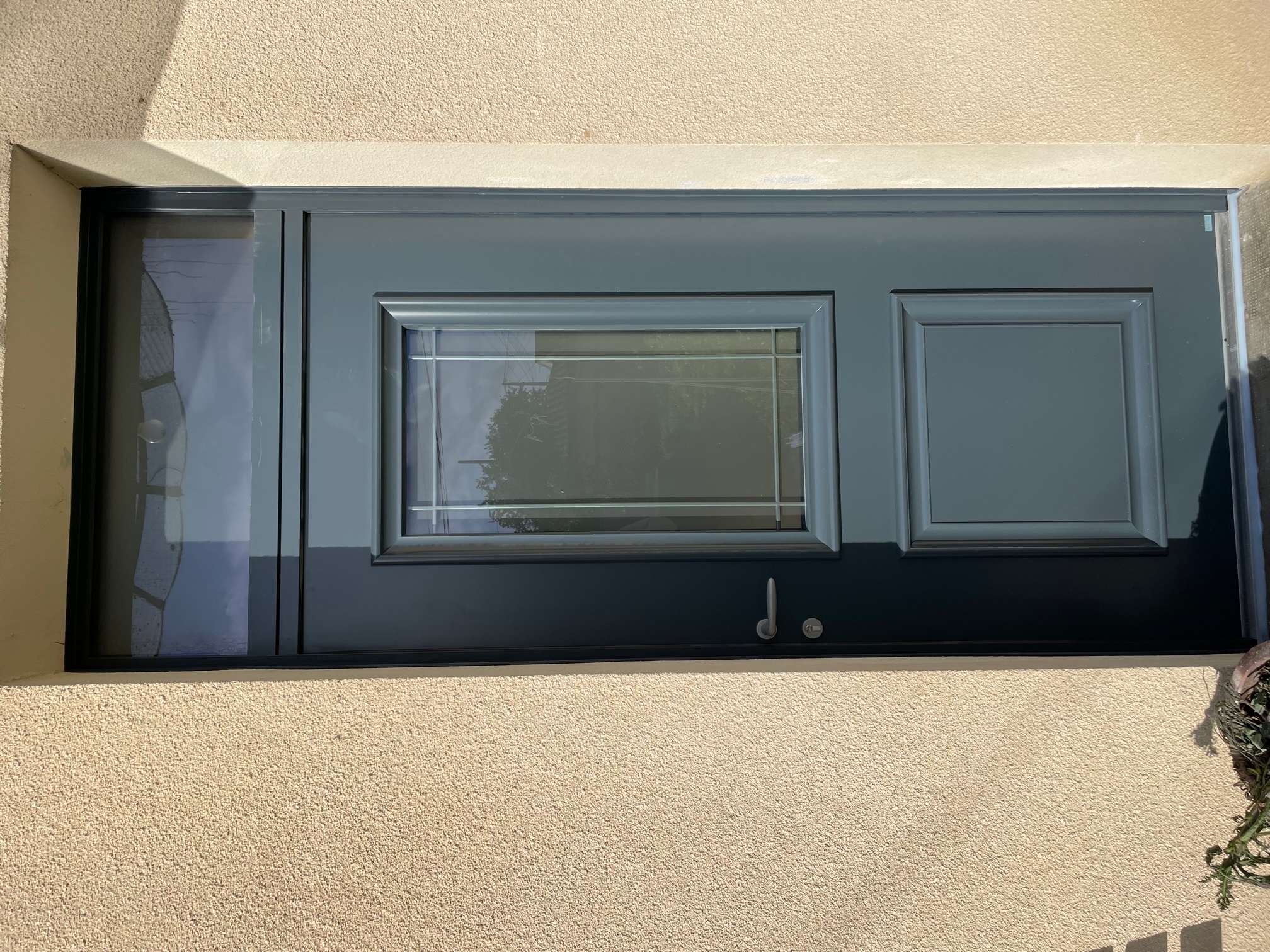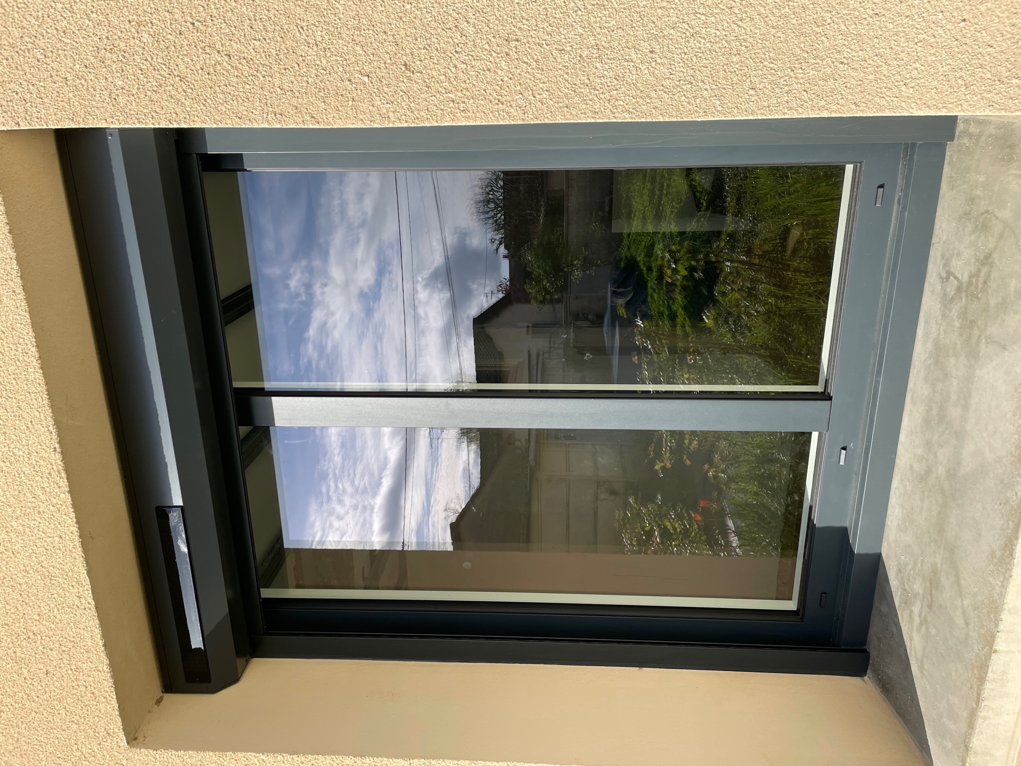 Menuiseries en aluminum gris anthracite et volet roulant solaire