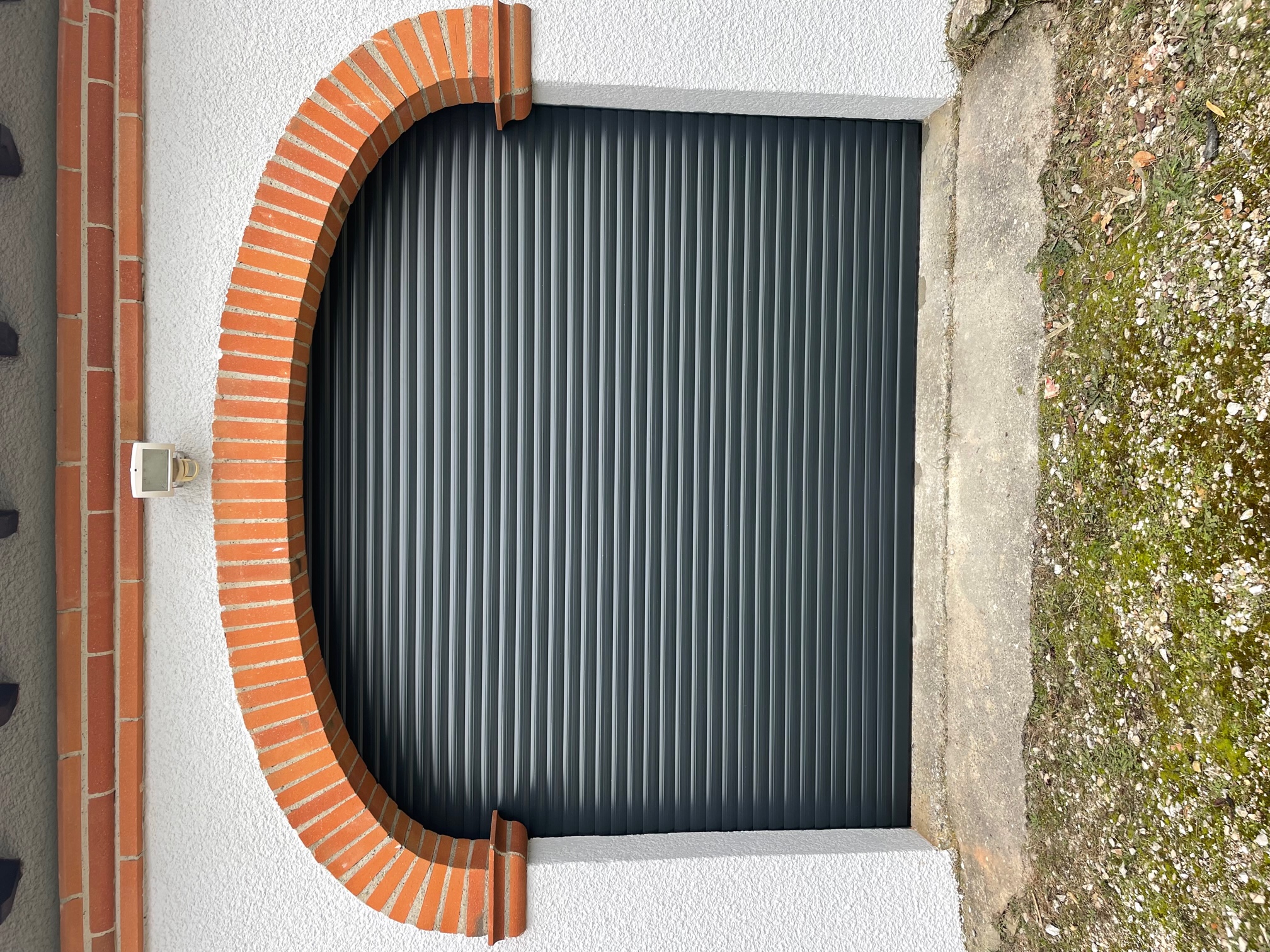 Réalisation d'un porte de garage enroulable, avec motorisation alimentée en énergie solaire.