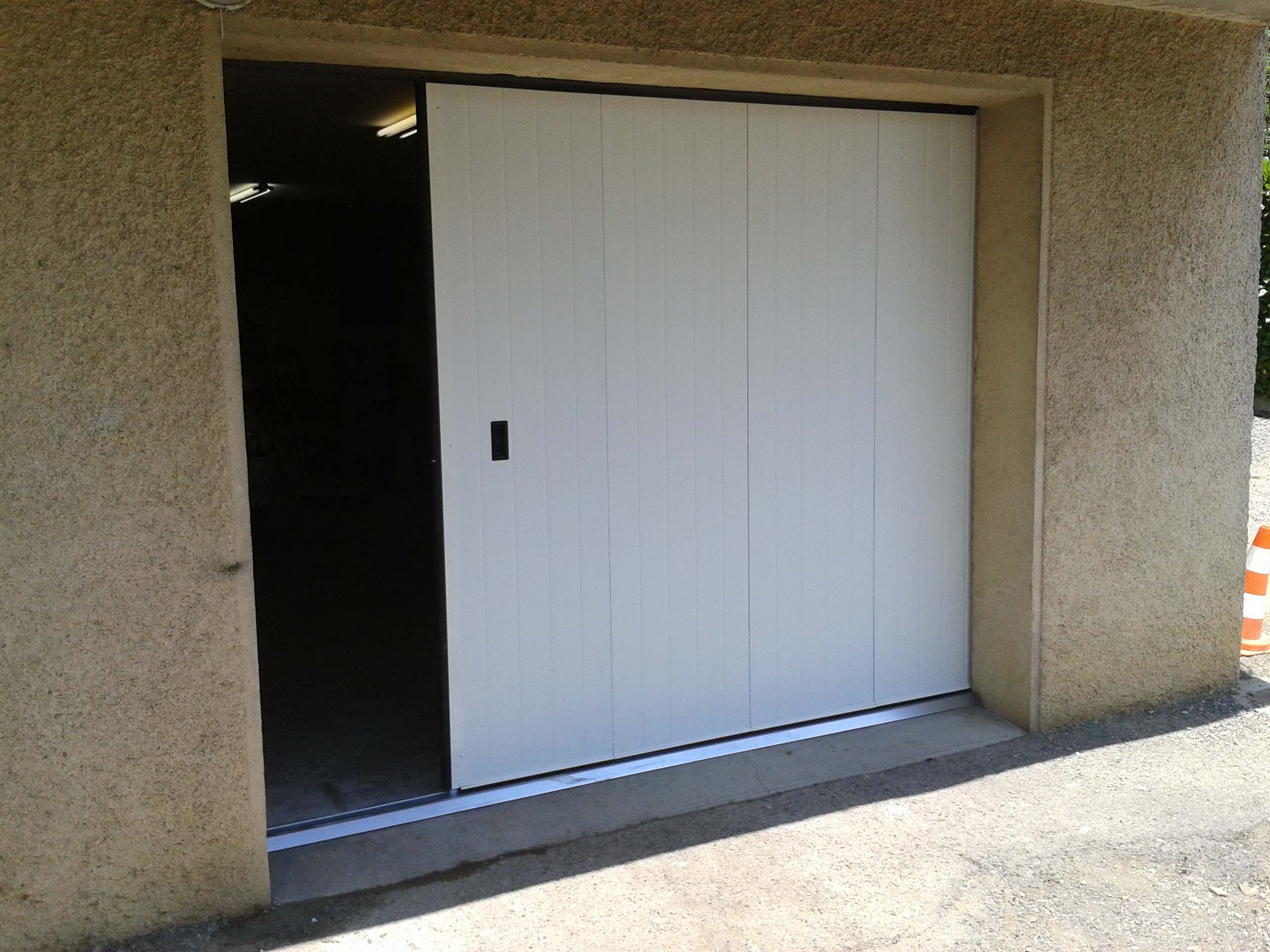 Porte de garage sectionnelle à déplacement latéral motorisée en acier isolée