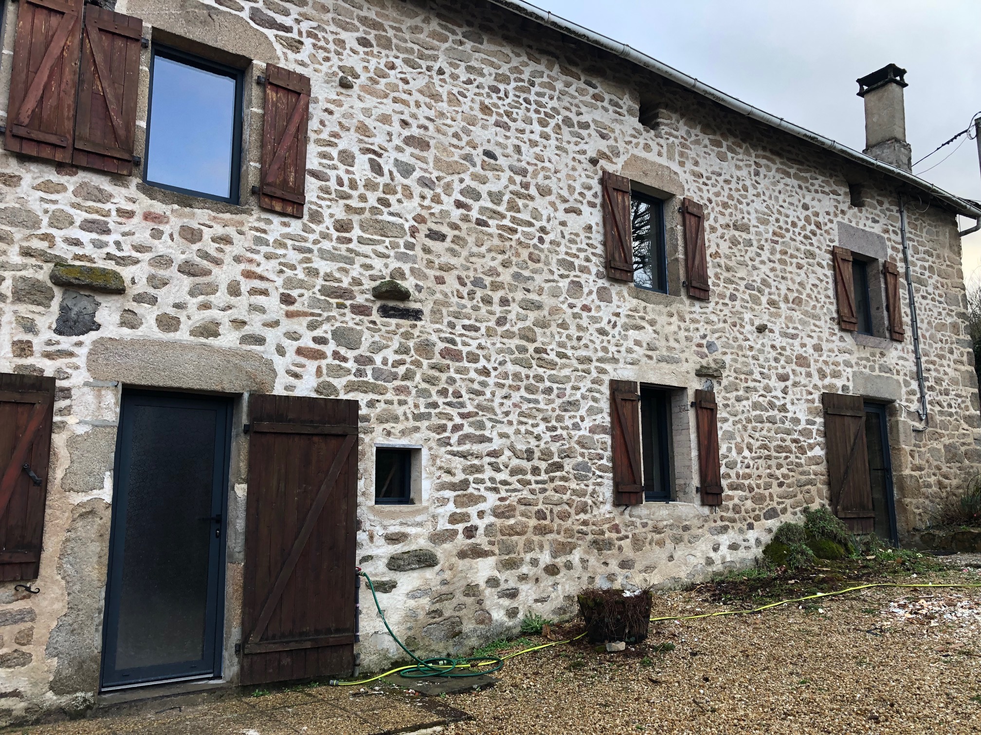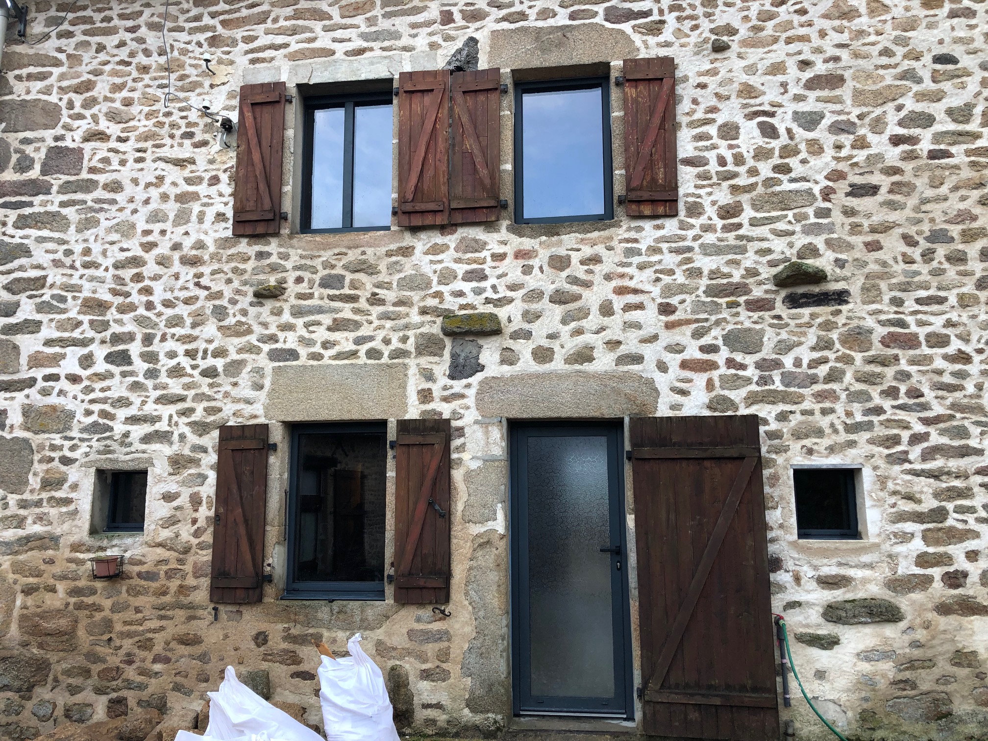 Pose de menuiseries en alu gris anthracite ral 7016 sur une ancienne bâtisse